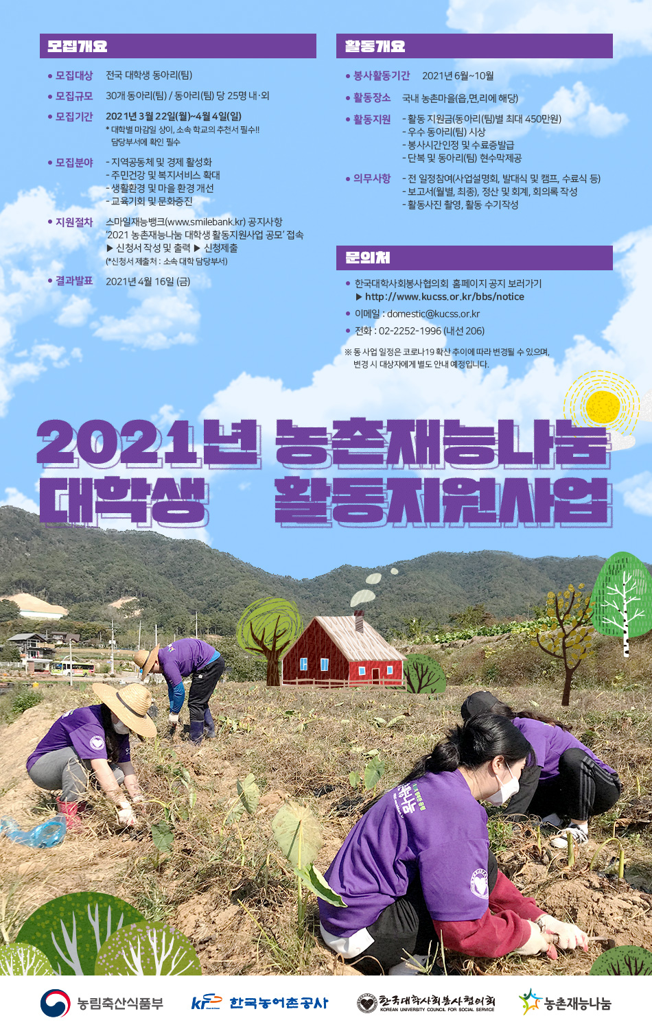 2021년 농촌재능나눔 대학생 활동지원사업 동아리(팀) 공모