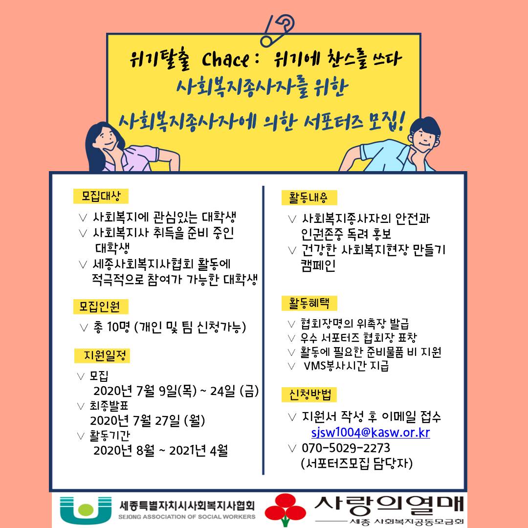 세종사회복지사협회 위기탈출 Chance : 위기에 찬스를 쓰다 서포터즈 모집 안내